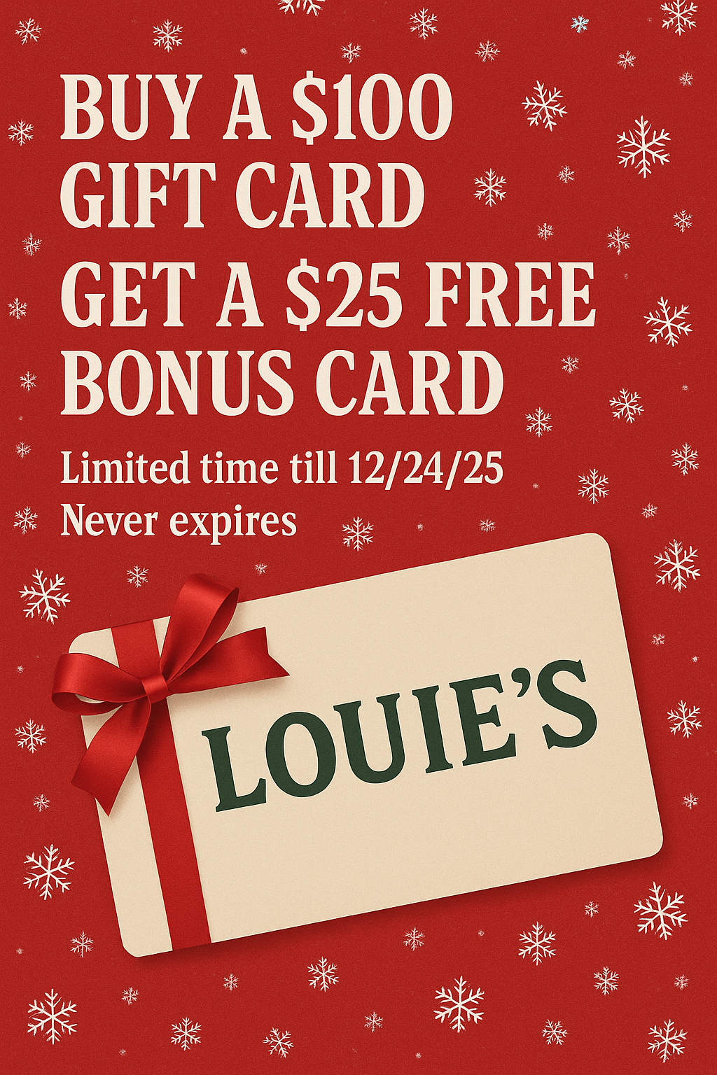 Let Louie's cater your next event with handmade Italian favorites, from specialty pies to classic pastas. Our team brings the flavors of our kitchen to your gathering with care and attention to every detail.